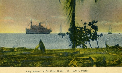 The Lady Boats were liners operated by the Canadian National Steamship Company. They were built by Cammell Laird of Birkenhead, on the Wirral in England and were named after the wives of British Admirals who had served in the Caribbean. They operated between Halifax in Canada, Bermuda and the Caribbean carrying mail, freight and passengers. Lady Rodney and Lady Somers were built for service to western Caribbean while the .Lady Nelson Lady Hawkins and Lady Drake served the eastern Caribbean including St. Kitts and were fitted out to carry more passengers. In 1942 while in Castries, St Lucia, the Lady Nelson was torpedoed by a U Boat. Eighteen persons were killed in the attack. The ship sank at the wharf but was refloated and towed to Mobile, Alabama in the US where it was repaired. For the rest of the war it operated as a hospital ship, carrying wounded Canadian servicemen back home for treatment. The Lady Nelson and the Lady Rodney, the only two of the fleet to survive the war returned to civilian service. The Lady boats facilitated passenger travel in the Leeward and Windward Islands until air travel gained popularity making their continued sailing in the region uneconomic.
