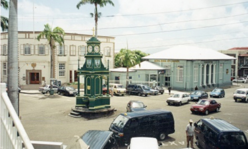 The Circus is the hub of Basseterre. It is a recognised landmark and a popular meeting place. The Circus owes its origins to the fire that destroyed Basseterre on July 4th, 1867. The whole town east of West Square street was devastated. The inefficiencies of the fire department were, at least in part, responsible for the magnitude of the disaster. When Basseterre was rebuilt, it was decided to make its streets easier for the fire truck to navigate. Among the new arrangements were the widening of Fort Street and the laying down of the Circus. In 1883 a memorial to Thomas Berkeley was placed at its centre. Because it contained a fountain and a clock, and it was erected on a platform which quickly became a seating area, it encouraged the gathering of people in the Circus.